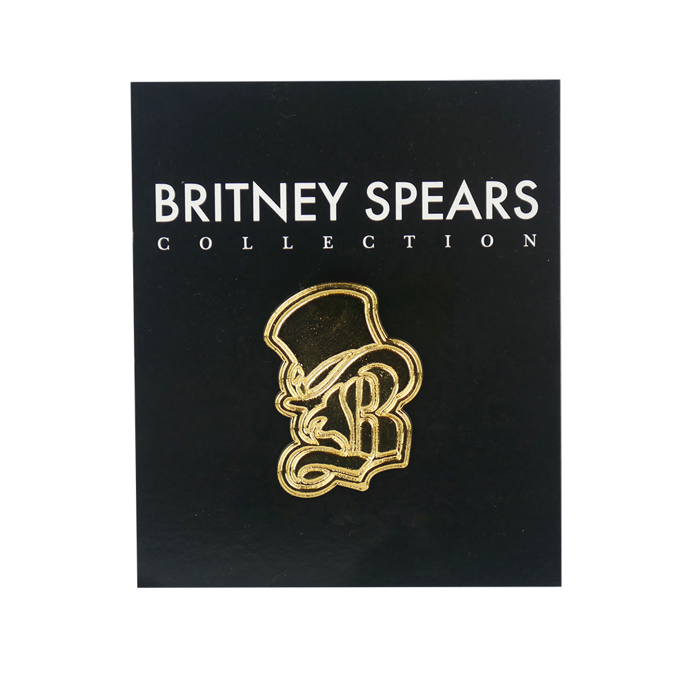 Polished gold-plated metal pin with clutch back featuring a "B" initial with a Circus top hat. 1" x 1.39"